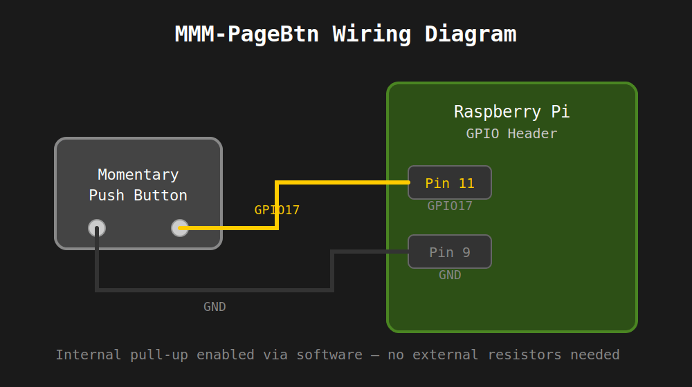 The wiring is minimal—just a momentary pushbutton connected between GPIO17 and ground: